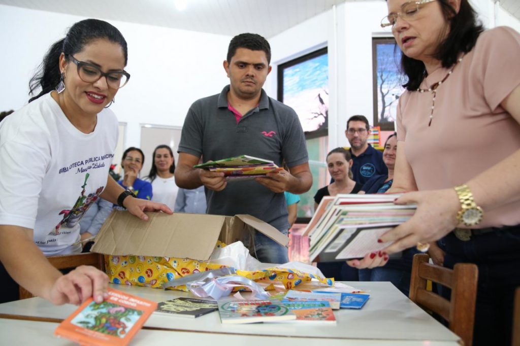 Na manhã de hoje (4), o prefeito Ari Lafin conferiu o trabalho que vem sendo desenvolvido na Biblioteca Pública Municipal Monteiro Lobato e aproveitou para acompanhar a entrega de livros doados por empresários sorrisenses que participaram do curso “Excelência de Qualidade”, ofertado por meio de uma parceria entre a Administração Municipal de Sorriso, via Secretaria de Desenvolvimento Econômico, e o Sebrae.