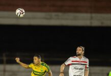 No primeiro tempo do duelo catarinense entre Joinville e Tubarão, nada menos que quatro gols. O Peixe até largou na frente em cabeçada de Gutierrez, após cobrança de escanteio, aos 15. Mas o empate do time da casa veio, aos 22, com Alison, de pênalti. Três minutos depois, o próprio camisa 9 aproveitou uma falha da defesa adversária para virar o jogo na Arena Joinville. E o atacante jaqueano queria mais e fez em arremate de fora da área: 3 a 1. Mas não parou por aí. Na volta do intervalo, o JEC chegou ao quarto, aos dez minutos, e mais uma vez com Alison. Em mais um pênalti para os mandante, Chrystian fez 5 a 1, aos 19. Enquanto no apagar das luzes Lucas Sá fechou a conta para o Joinville: 6 a 1.