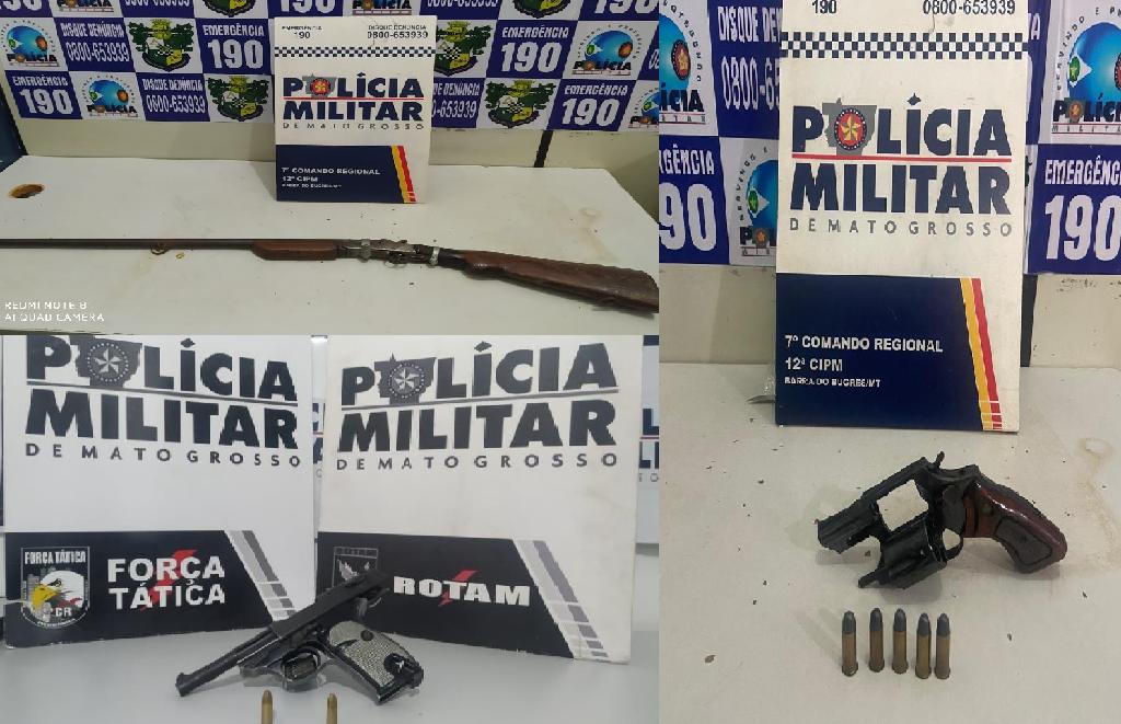 Policiais prenderam nesta segunda-feira (11.01), três homens por porte ilegal de arma de fogo em Cuiabá e Barra do Bugres.