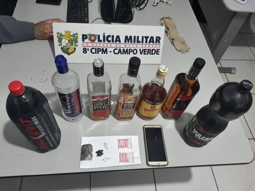 Equipes da 8ª Companhia de Campo Verde (a 131 km de Cuiabá) prenderam neste domingo (24.01) dois homens e uma mulher e apreenderam três adolescentes entre 14 e 16 anos por perturbação e uso de droga, no bairro São Miguel.