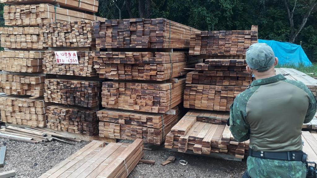 Equipes da 2ª Companhia do Batalhão de Proteção Ambiental de Rondonópolis (a 212 km de Cuiiabá) apreenderam nesta quarta-feira (17.02), 35 mil metros cúbicos de madeira sem procedência e um caminhão scania branco, com irregularidade.