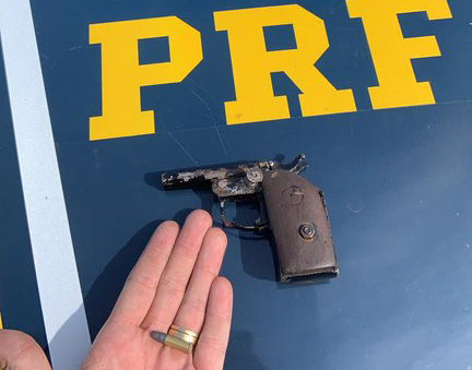 O automóvel foi abordado, e era conduzido por um homem de 49 anos, que após fiscalização, foi encontrado uma arma de fogo municiada no porta luvas (arma de fogo artesanal cal.22, número de série ausente ou suprimido e 01, munição).