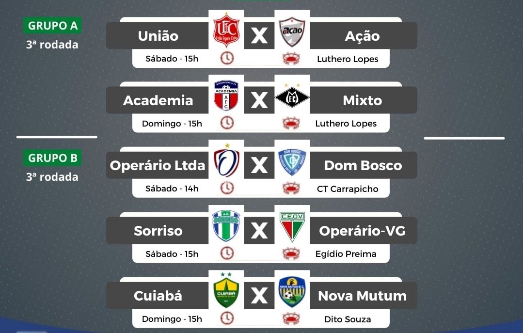 Cinco jogos, ao todo, movimentam a 3ª rodada do Mato-grossense Sub-17, neste sábado (16) e o domingo (17).