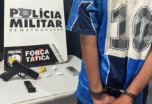 Policiais militares do 5º Batalhão impediram, nesta segunda-feira (27.06), um roubo em uma loja na região central de Rondonópolis (220 km de Cuiabá), recuperaram celulares e prenderam, em flagrante, um suspeito de 27 anos. Durante ação, os militares ainda apreenderam uma arma de fogo e seis munições intactas.