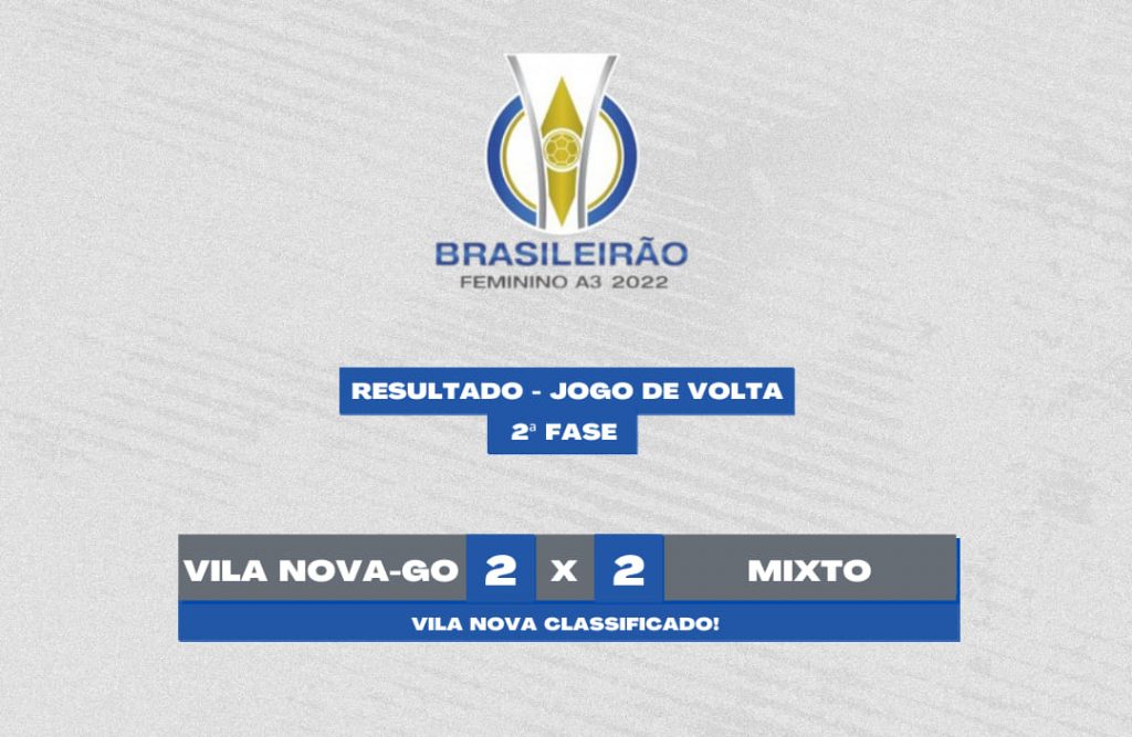 O Vila Nova-GO está classificado para a 3ª fase do Campeonato Brasileiro de Futebol Feminino da Série A3.