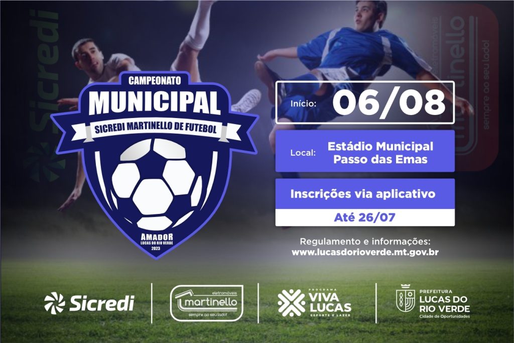A Prefeitura de Lucas do Rio Verde, por meio da Secretaria de Esporte e Lazer, está com inscrições abertas até 26 de julho para o 13º Campeonato Municipal de Futebol Amador. A iniciativa conta com a parceria das Eletromóveis Martinello e Cooperativa Sicredi.