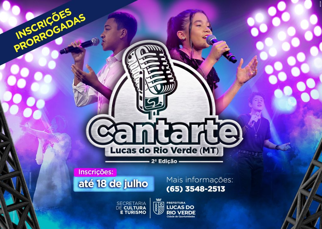 A Prefeitura de Lucas do Rio Verde, por meio da Secretaria de Cultura e Turismo informa que as inscrições para o Cantarte – Concurso de Canto 2ª Edição, foram prorrogadas. Agora, os artistas do município tem até o dia 18 de julho para participar.