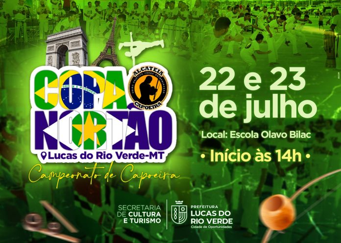 A Prefeitura de Lucas do Rio Verde, por meio da Secretaria de Cultura e Turismo, convida a população para prestigiar a 4ª edição da Copa Nortão de Capoeira. A competição será realizada nos dias 22 e 23 de julho, no Ginásio de Esportes Nari Pandolfi, anexo à Escola Municipal Olavo Bilac, a partir das 14h.