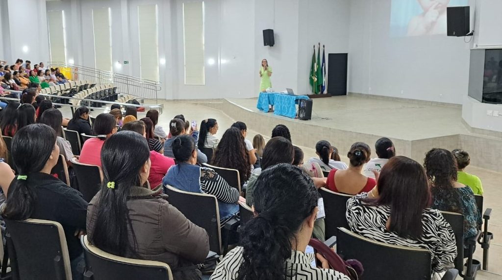 Na primeira semana de julho, aproximadamente 240 profissionais da educação infantil, (creches e pré-escolas), Técnicos-Administrativos em Educação (TAE) – área de monitoria e alimentação, e coordenadores escolares, participaram da Formação Continuada com a presença do professor palestrante Israel Boniek, que enfatizou a importância dos olhares sensíveis ao ambiente e aos espaços da Educação Infantil.