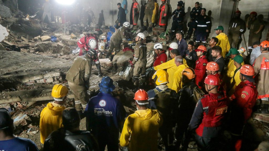Com as buscas por moradores encerradas após 31 horas, os bombeiros continuam procurando animais na parte do prédio que não desabou.