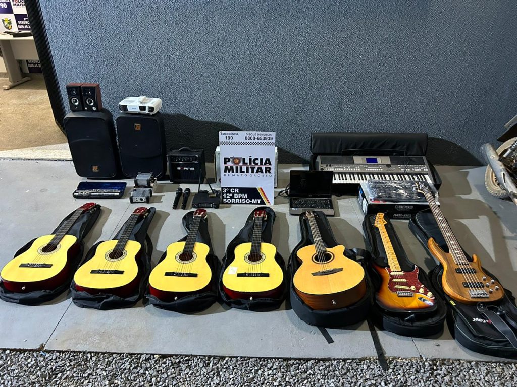 Na casa, foram encontrados cinco violões, uma guitarra, um contrabaixo, quatro caixas de som, um teclado, duas pedaleiras e dois microfones. Além disso, foram localizados também um projetor, um notebook, uma flauta e cinco aparelhos celulares.