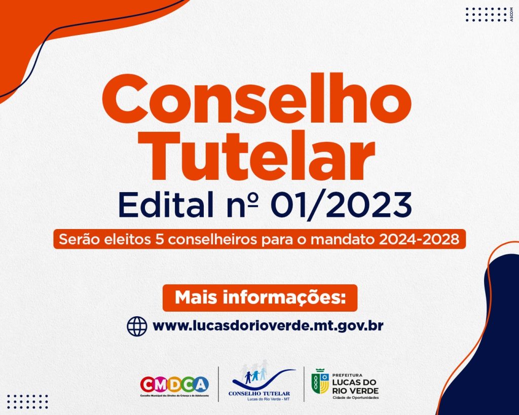 Mais informações estão disponíveis no Edital 01/2023 – Escolha Unificada para membros do Conselho Tutelar: https://www.lucasdorioverde.mt.gov.br/arquivos/publicacoes/1278/edital_n_001-2023-processo_de_escolha_membros_ct.pdf