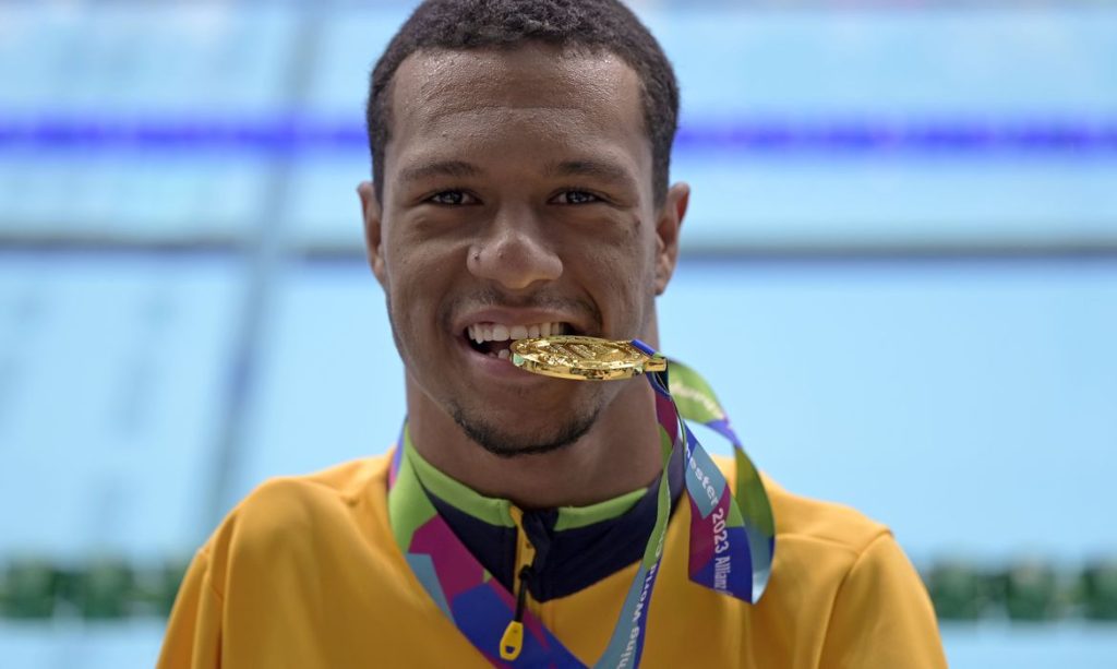 A conquista do nadador do Praia Clube, de Uberlândia (MG), foi o destaque da seleção brasileira no penúltimo dia de campeonato. A outra medalha dourada conquistada pelo time verde e amarelo veio no revezamento misto 4×100 metros estilo livre – 49 pontos (atletas com deficiência visual). Carol Santiago (S12), Matheus Rheine (S11), Lucilene Sousa (S12) e Douglas Matera (S12) fecharam a prova em 3min56s03, superando a Espanha (3min57s73) e a Ucrânia (3min59s30). Com a medalha no revezamento, Carol Santiago se mantém como a mais vencedora de todo Mundial. São sete medalhas em sete provas disputadas: cinco ouros (100 metros borboleta, livre e costas, 50 metros livre e revezamento misto), uma prata (100 metros peito) e um bronze (revezamento misto 4×100 metros medley – 49 pontos). No domingo, último do torneio, ela ainda competirá nos 200 metros medley S12 (baixa visão). Agora, já são 14 ouros ganhos pelos brasileiros na edição 2023 do evento.
