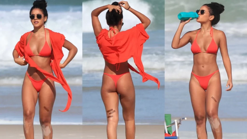 De biquíni preto, a atriz mato-grossense de 25 anos exibiu a excelente forma física e movimentou os fãs ao mostrar o bumbum GG.