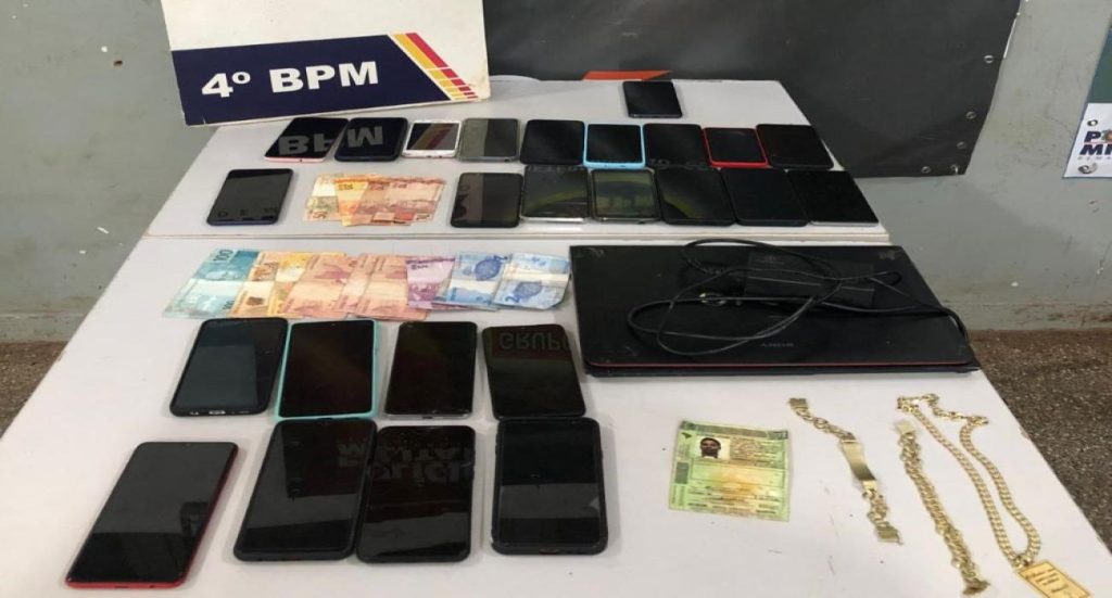As equipes chegaram até uma lanchonete e identificaram um dos suspeitos no estabelecimento comercial. Com ele, os militares encontraram o celular da vítima do roubo. Em seguida, durante buscas no local, os militares encontraram 16 aparelhos celulares em uma residência aos fundos da lanchonete.