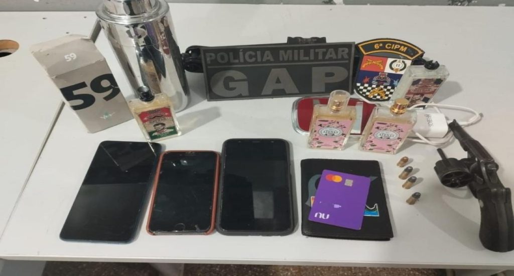 Já no bairro Jardim Eldorado, os criminosos desceram do veículo, tentaram fugir a pé e todos foram detidos. Com eles, os policiais encontraram objetos pessoais e um revólver calibre .32, com quatro munições.