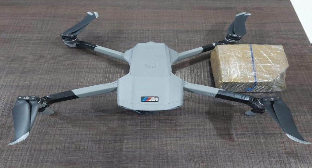 A droga e o drone foram encaminhados para a Delegacia de Polícia que deverá investigar o caso.
