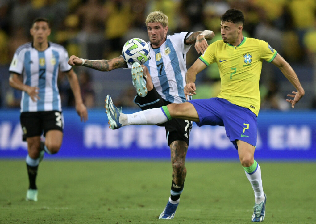 A situação da seleção se complicou de vez aos 36 minutos, quando Joelinton foi expulso após dividir bola com De Paul e o juiz entender que o brasileiro acertou o argentino no rosto em marcação muito contestada.