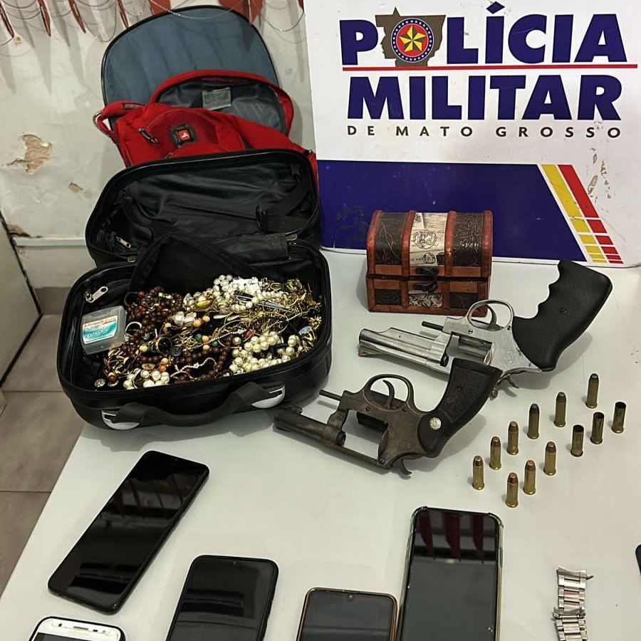 Com os criminosos, a PM apreendeu dois revólveres, de calibre 357 e 38, e recuperaram uma bolsa contendo diversas peças de joias e semijoias. Os três suspeitos receberam voz de prisão e foram conduzidos para a Delegacia da cidade para registro da ocorrência e demais providências.