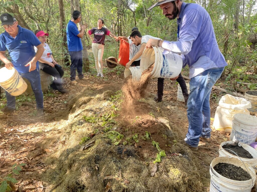 Rogério mostrou na prática, como é o manejo de três tipos de adubos: biodigestor, compostagem e bokashi.