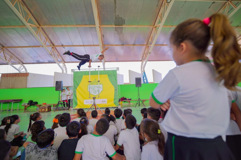 Alunos da rede municipal estão participando de oficinas do Projeto Circo no Brasil, que iniciou nesta segunda-feira (27) e segue até 29 de maio, em Lucas do Rio Verde. Os primeiros a receber o espetáculo circense, foram os estudantes da Escola Vinícius de Moraes, na tarde desta segunda-feira (27), no ginásio de esporte da unidade escolar.