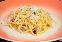 8. Serva a massa com uma boa porção de molho de linguiça por cima, e polvilhe com queijo a gosto.