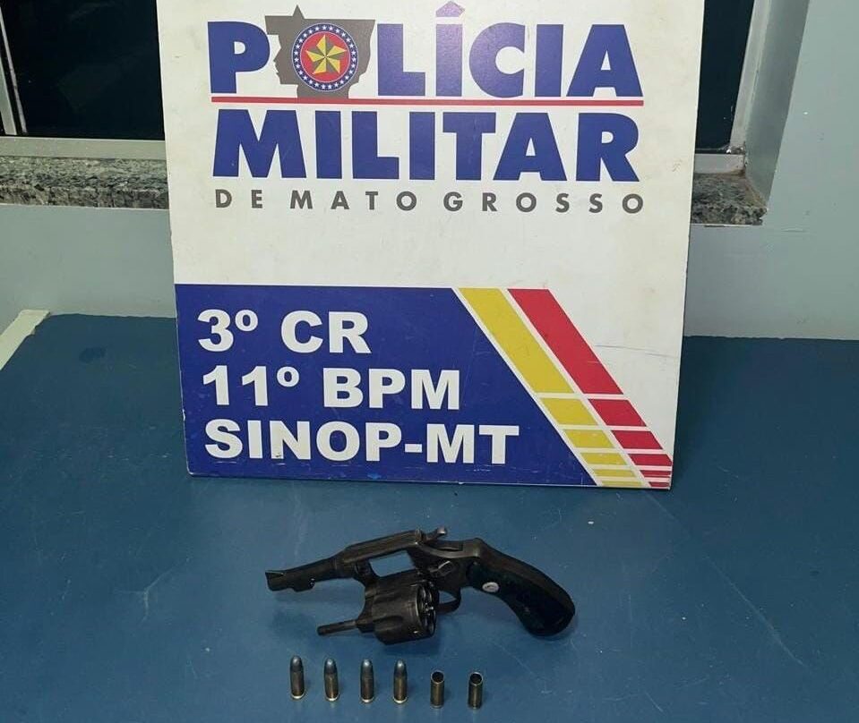 Diante da situação, o suspeito foi detido e os policiais seguiram até a casa do pai, que autorizou a entrada dos militares. No interior do imóvel, a PM localizou um revólver de calibre .32 carregado com munições.