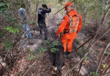 Na ocasião, antes que a equipe pudesse anunciar a presença policial, o suspeito fugiu pelos fundos da residência, adentrando na vegetação densa, o que impossibilitou sua captura.