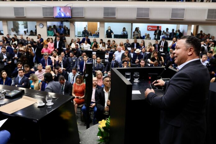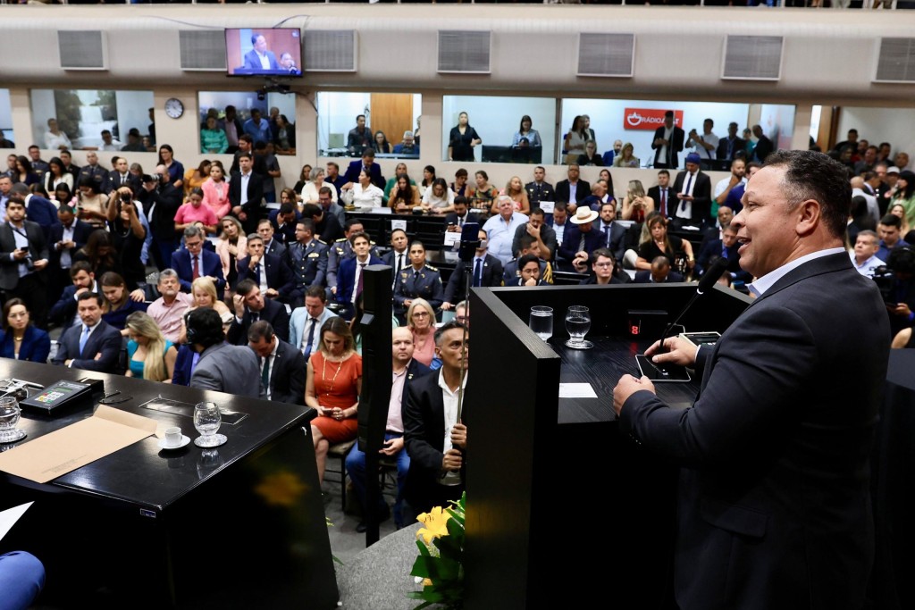 Prefeito discursa na posse da nova Mesa Diretora da Assembleia