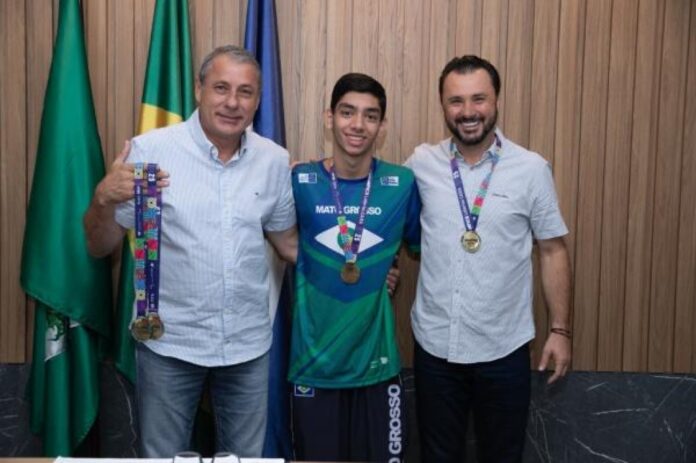 Na manhã desta quinta-feira (08), o jovem nadador Wesley Nunes da Silva, de 15 anos, visitou o gabinete do prefeito de Sorriso, Alei Fernandes. Ele foi recebido pelo prefeito, pelo vice-prefeito Acácio Ambrosini e pelo secretário municipal de Esporte, Lazer e Juventude, Odimar Bianchin. Acompanhado da família, Wesley foi homenageado pelas autoridades após se tornar o primeiro atleta paralímpico do município a garantir vaga no Campeonato Brasileiro de Natação.