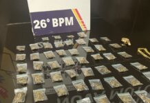 Os policiais se deslocaram até o endereço e flagraram o suspeito recebendo um tambor no local indicado. Os militares se aproximaram e realizaram a abordagem. No recipiente, foram encontrados 27 tabletes de maconha.