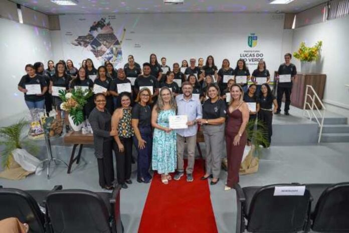Profissionais de 17 unidades escolares da rede municipal participaram da capacitação e celebraram a conquista com familiares e colegas em um momento de valorização profissional e compromisso com a inclusão.