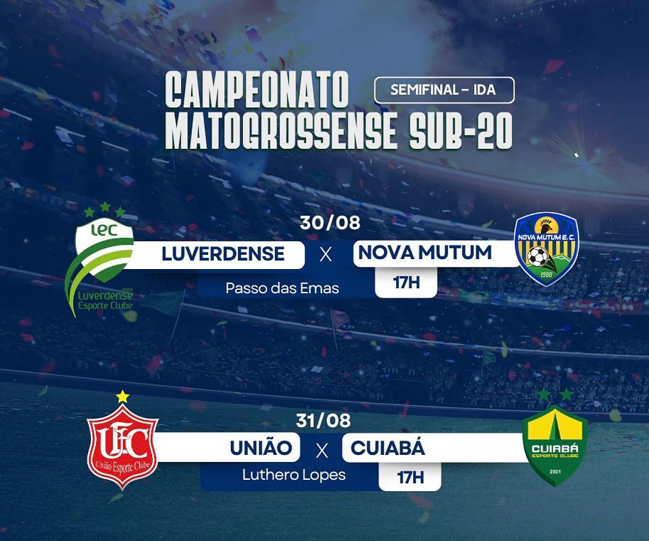 A fase semifinal do Campeonato Mato-grossense Sub-20 2025, têm início neste fim de semana, com jogo no sábado (30) e seguindo no domingo (31). União, Cuiabá, Luverdense e Nova Mutum entram em campo em busca de uma vaga na decisão, em duelos que prometem movimentar o interior do estado.
