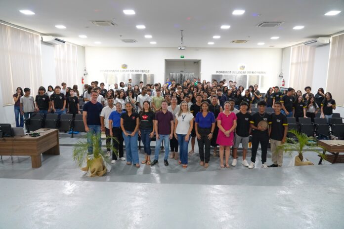 A Prefeitura de Lucas do Rio Verde, por meio da Secretaria de Educação, proporcionou neste sábado (30), no Auditório dos Pioneiros, um aulão especial de Língua Portuguesa e de Matemática, com a participação de 170 estudantes do 9º ano do Ensino Fundamental. O encontro foi nomeado pelos próprios alunos como “Ação IDEB 2025 – Calculando a Gramática”.