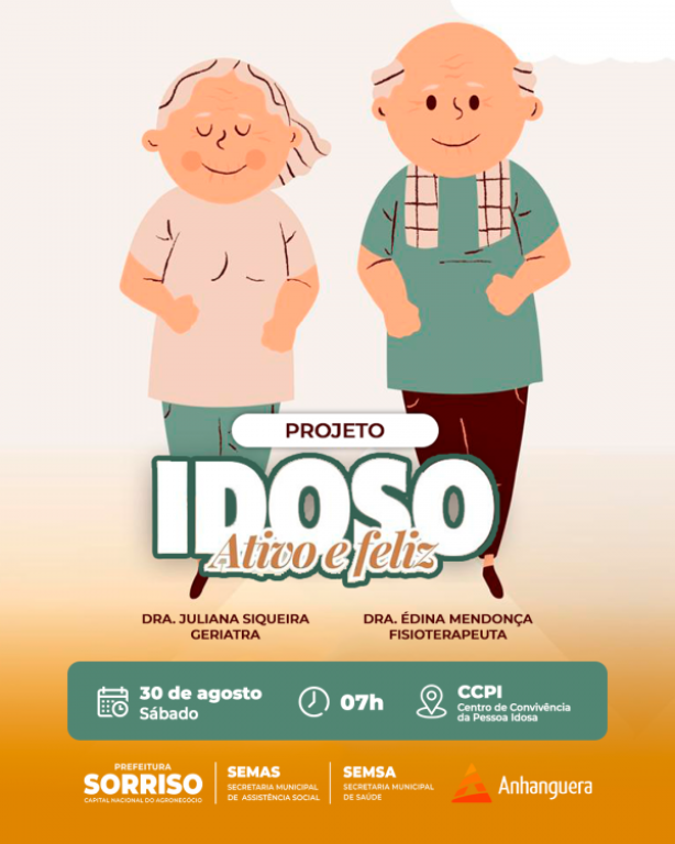 Envelhecer com saúde é manter o corpo em movimento e o coração conectado com outras pessoas. E para descobrir como tornar a jornada do envelhecimento uma experiência mais ativa, plena e feliz, o Centro de Convivência da Pessoa Idosa (CCPI) recebe neste sábado, 30 de agosto, mais uma edição do projeto “Idoso Ativo e Feliz”, com a participação da médica geriatra Dra. Juliana Siqueira e a fisioterapeuta Dra. Édina Mendonça, que abordarão temas essenciais para um envelhecimento saudável.