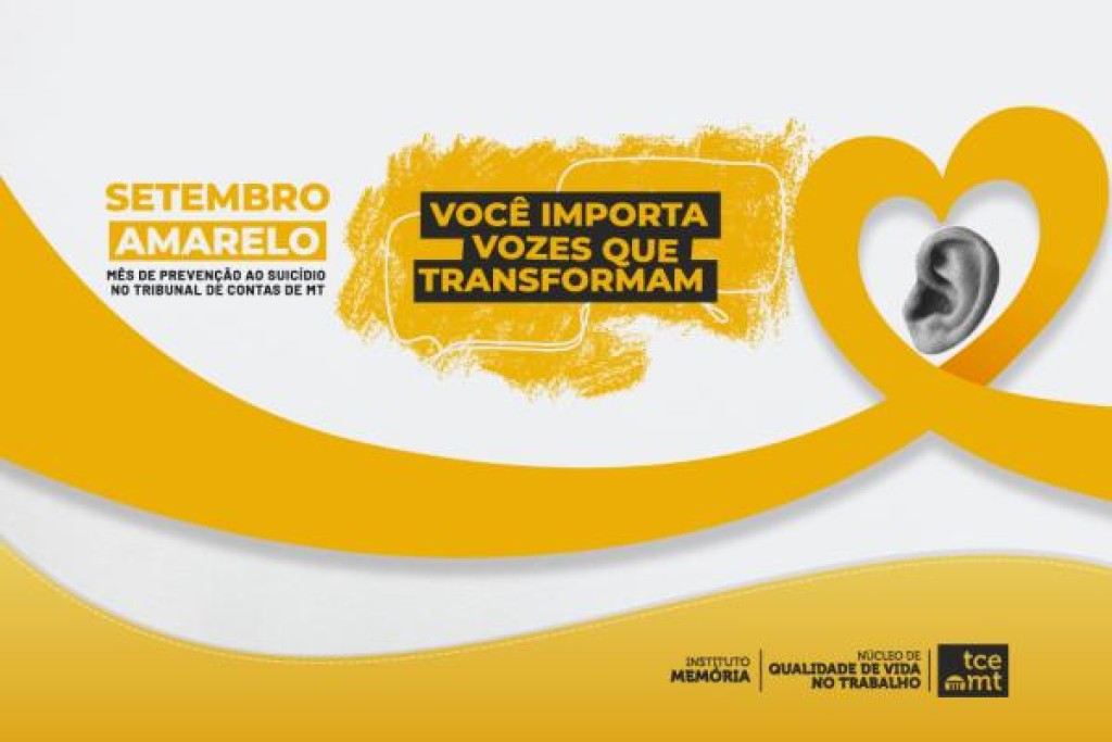 A Secretaria Executiva de Gestão de Pessoas do Tribunal de Contas de Mato Grosso (TCE-MT), por meio do Núcleo de Qualidade de Vida no Trabalho (NQVT), dá início, às 9h da próxima terça-feira (2), à campanha em alusão ao Setembro Amarelo. A solenidade será na recepção do Edifício Marechal Rondon e contará com apresentação da Banda do Corpo de Bombeiros Militar.