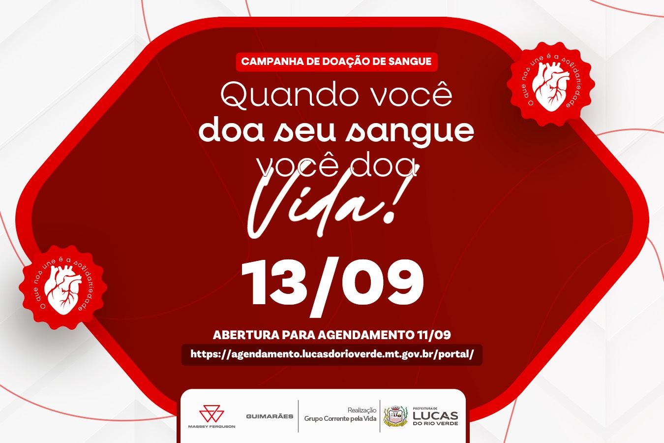 Inicia nesta quinta-feira (11), o agendamento para a Campanha de Doação de Sangue. A iniciativa é da Secretaria Municipal de Saúde de Lucas do Rio Verde e Banco de Sangue de Sorriso, com o apoio do Grupo Corrente Pela Vida e patrocínio da Guimarães Agrícola.
