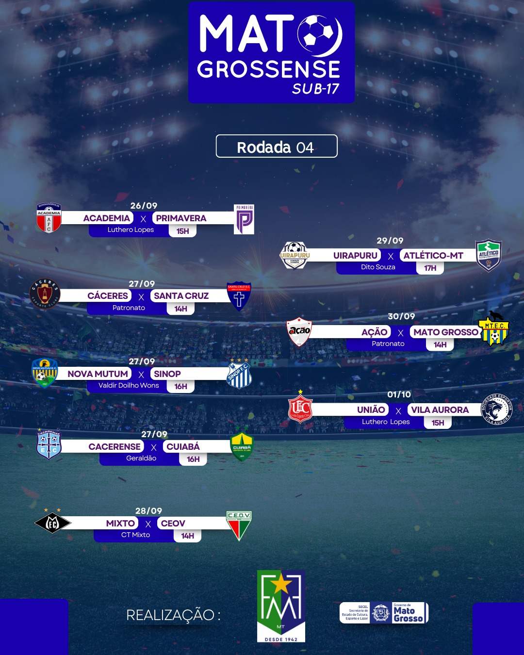O Campeonato Mato-grossense Sub-17 segue em ritmo acelerado e chega à disputa da 4ª rodada.