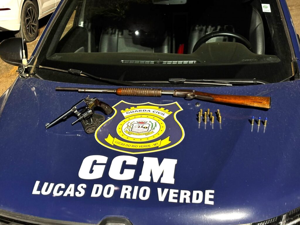 A Guarda Civil Municipal (GCM) de Lucas do Rio Verde apreendeu duas armas de fogo e prendeu um homem após ocorrência de disparos registrada na madrugada desta terça-feira (09), no Bairro Veneza.