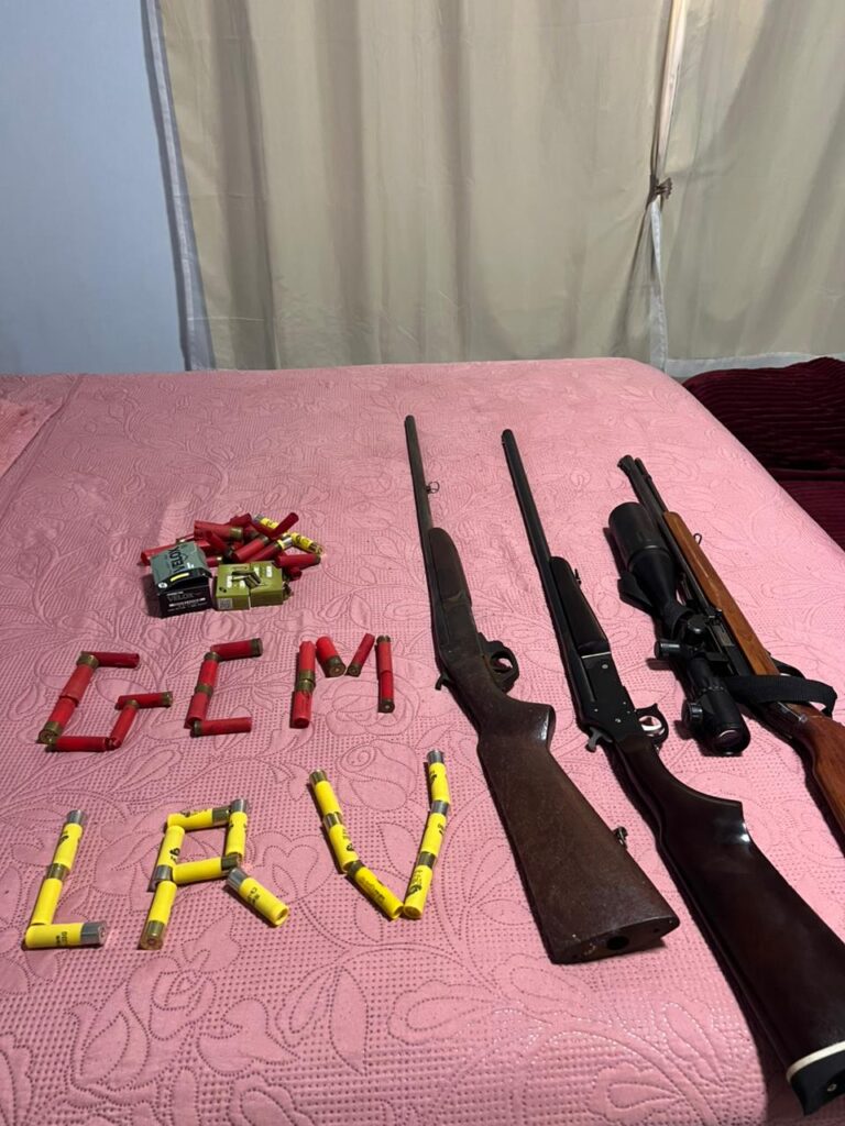 Durante o atendimento, realizado pela viatura 03 da GCM em conjunto com o Conselho Tutelar, surgiu a suspeita de que o responsável pela residência possuía armas de fogo em sua posse. Diante disso, os agentes realizaram uma busca domiciliar e localizaram três armas de fogo de cano longo: