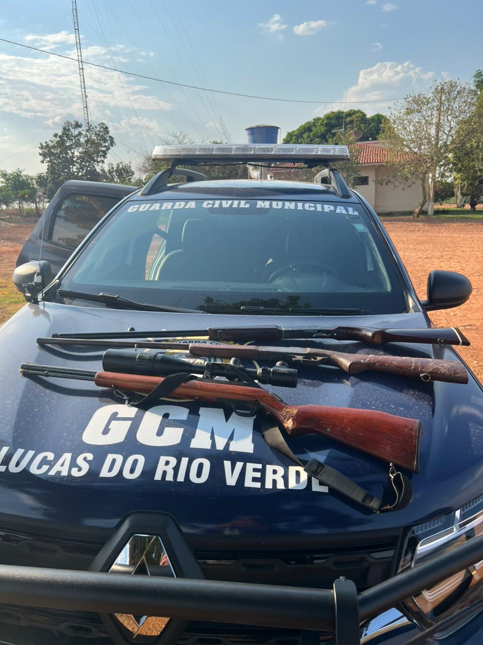 Durante o atendimento, realizado pela viatura 03 da GCM em conjunto com o Conselho Tutelar, surgiu a suspeita de que o responsável pela residência possuía armas de fogo em sua posse. Diante disso, os agentes realizaram uma busca domiciliar e localizaram três armas de fogo de cano longo: