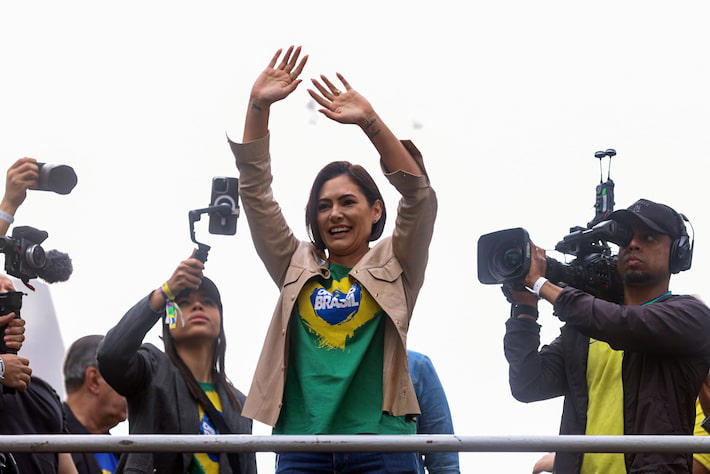 “Nós precisamos eleger o maior número de deputados e senadores em 2026 e vamos trabalhar pra reeleger o nosso presidente Jair Bolsonaro. Porque eu não quero ser presidente, não, eu quero ser primeira-dama. E eu sei que a restituição de nossa nação virá”, discursou.