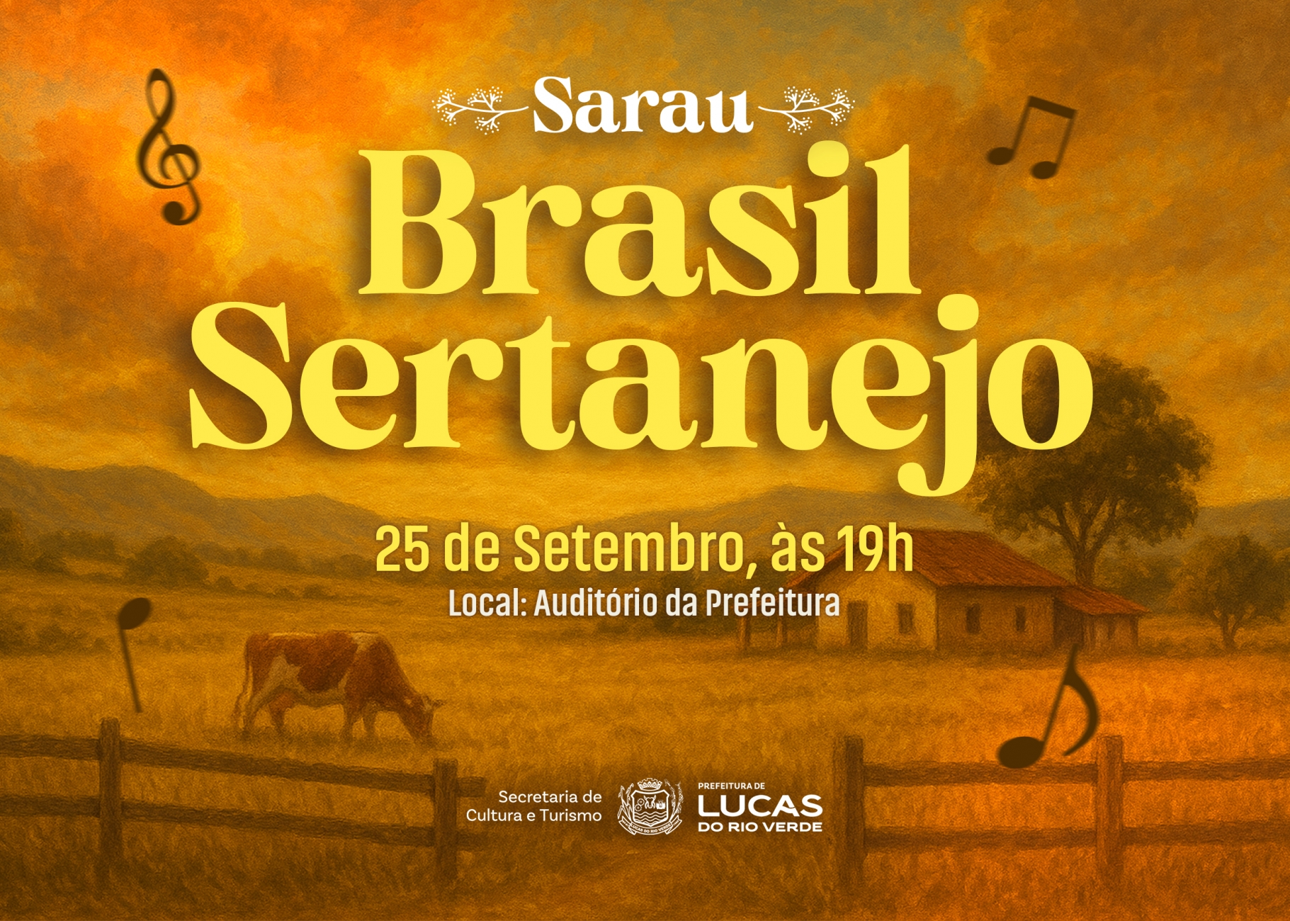 O auditório do Paço Municipal será palco de uma noite especial nesta quinta-feira (25), a partir das 19h, com o Sarau Brasil Sertanejo. O evento vai reunir alunos e professores das oficinas culturais de canto, violão, teclado e piano em um momento de muita música e valorização da cultura local.