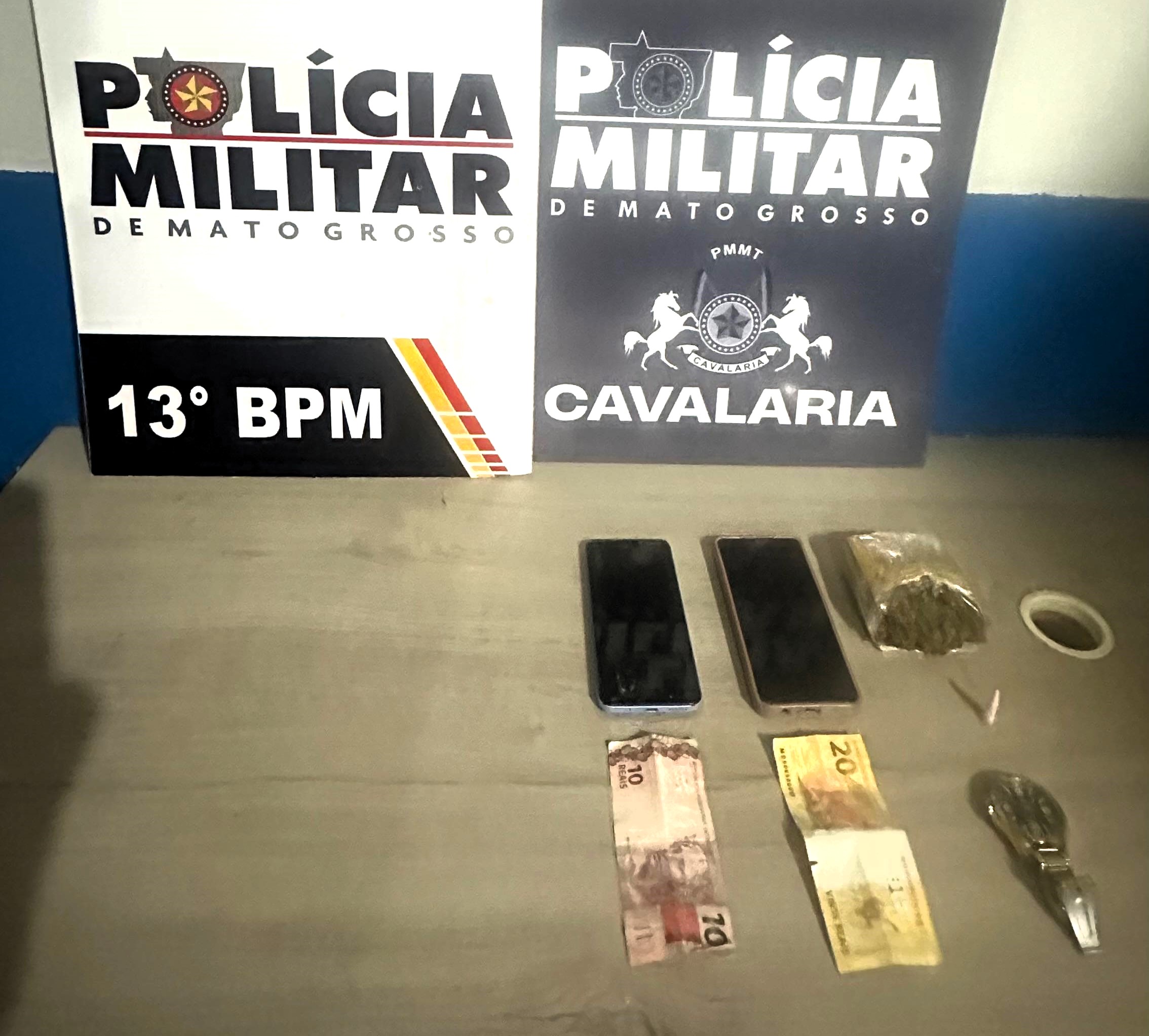 Também foram apreendidos dois celulares, um relógio e a quantia de R$ 30,00 em dinheiro. Os conduzidos foram encaminhados à Delegacia de Polícia Civil, onde o boletim de ocorrência foi registrado e os procedimentos legais adotados.