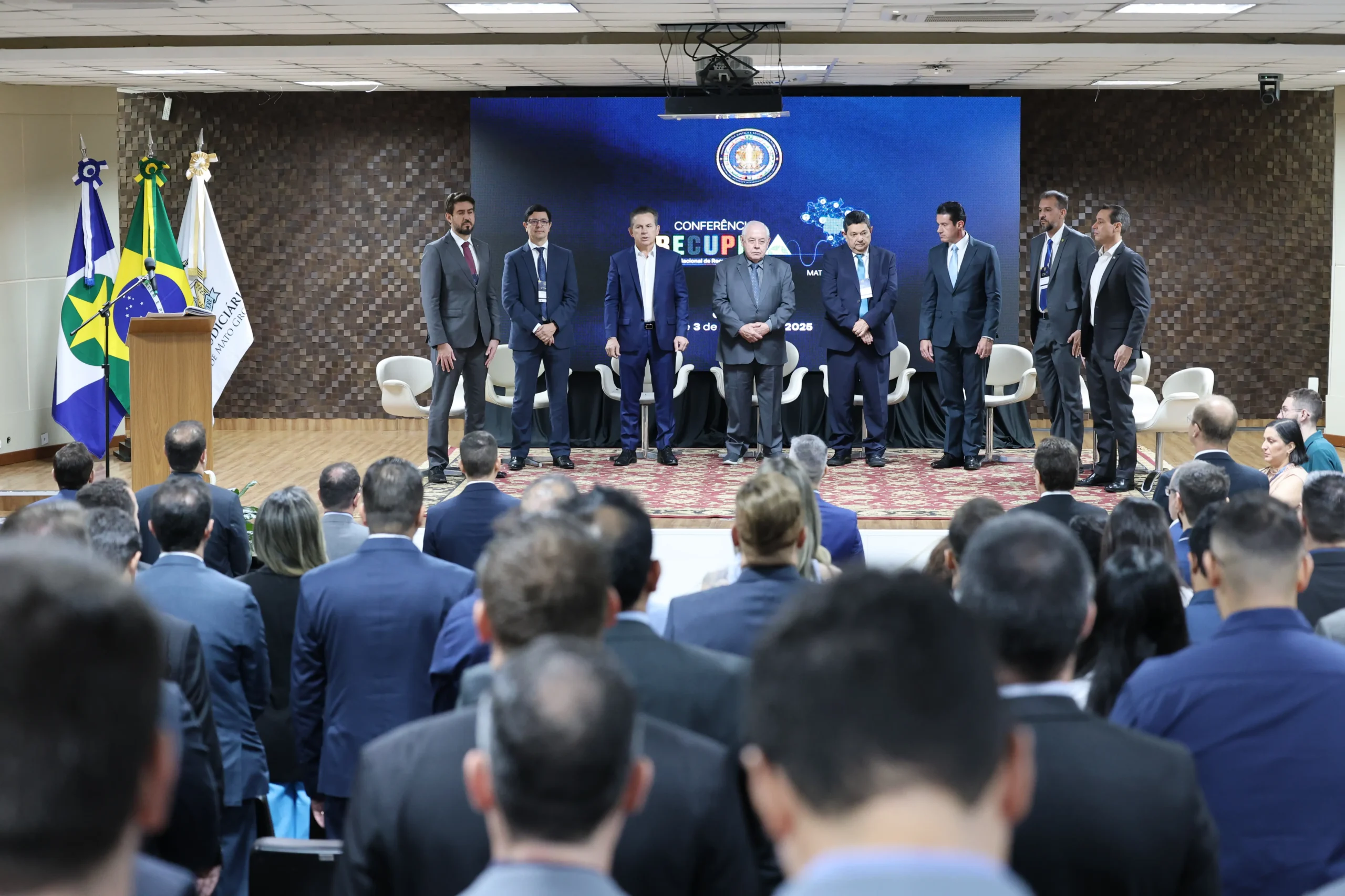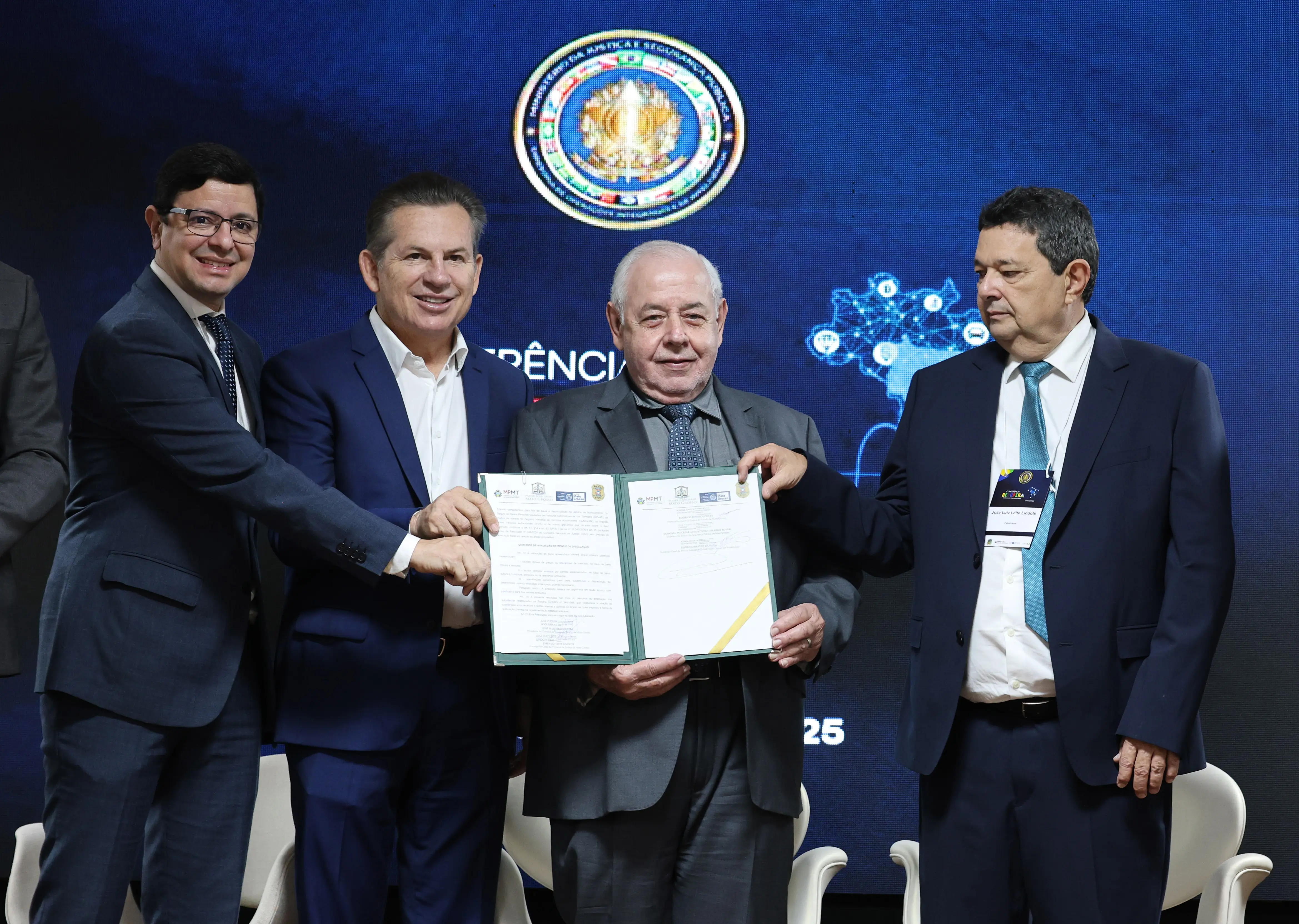 Além dos pronunciamentos de autoridades, a abertura do Recupera MT contou ainda com a assinatura da Resolução Conjunta nº 01/2025, que trata da guarda e destinação dos bens e materiais apreendidos ou constritos em procedimentos criminais pelo Estado. Assinaram o documento o governador Mauro Mendes, o presidente do TJMT, desembargador José Zuquim Nogueira, o corregedor-geral da Justiça, desembargador José Luiz Leite Lindote, o promotor de justiça Renee do Ó Souza e o delegado-geral adjunto da Polícia Judiciária Civil, Rodrigo Bastos da Silva.
