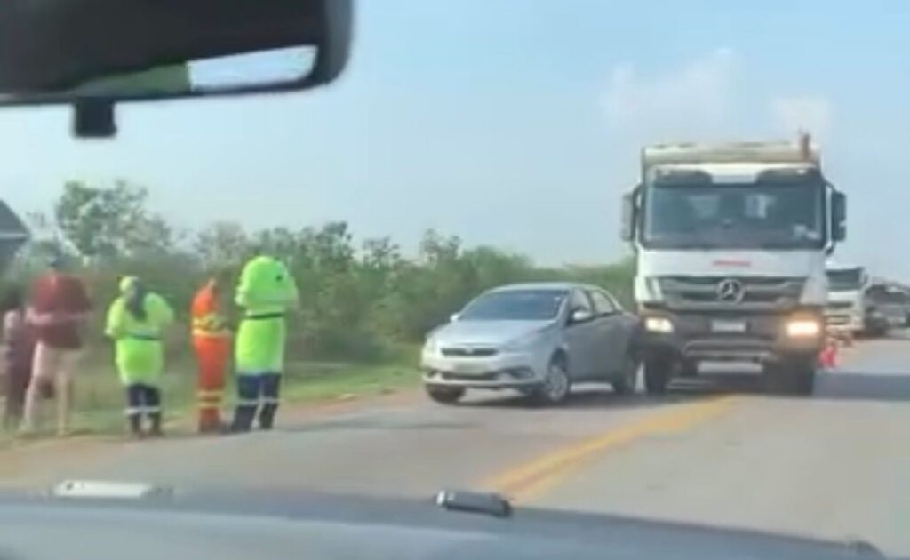 Uma colisão traseira entre um caminhão e um automóvel foi registrada na tarde desta quarta-feira (08) no km 692 da BR-163, trecho entre Sorriso e Lucas do Rio Verde.