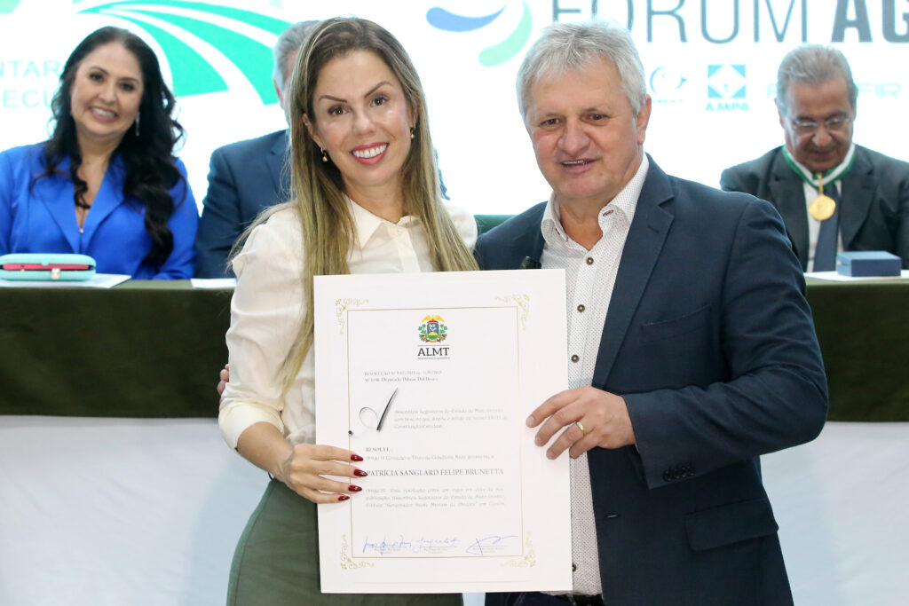 Para Patrícia Brunetta, que também foi agraciada com o título de cidadã mato-grossense, o reconhecimento pelo sua trajetória de vida e profissional relacionada ao agronegócio no estado a deixou muito honrada. “Eu me sinto muito feliz, eu sinceramente amo fazer parte do estado do Mato Grosso, foi aqui que eu desenvolvi o meu trabalho, meu crescimento pessoal, meu crescimento profissional e familiar, aqui eu constituo o meu casamento, a minha família, então para mim hoje é um dia de muita alegria, de muita felicidade, eu tenho muito a agradecer ao deputado Dilmar Dal Bosco pelo reconhecimento e pelo oferecimento dessa homenagem”, destacou