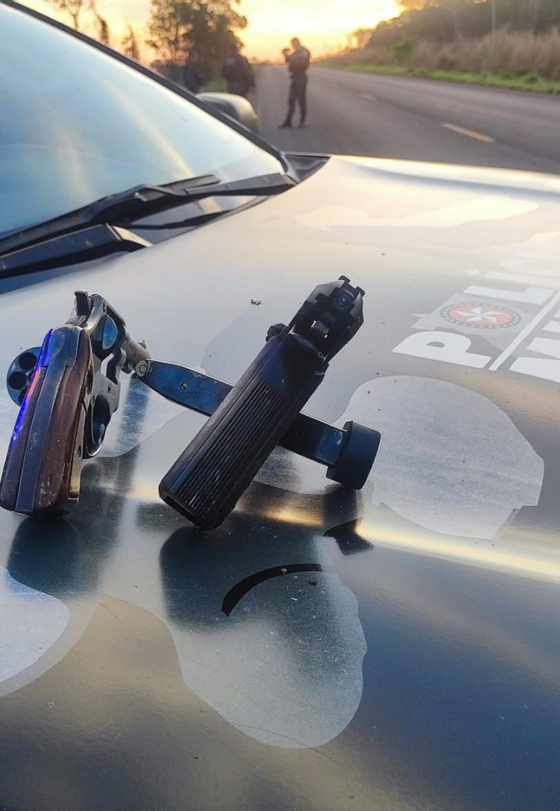 Após alguns quilômetros de acompanhamento, o veículo foi abordado. Conforme o boletim, ao descerem do carro, os dois ocupantes sacaram armas de fogo e apontaram contra os policiais, que reagiram à agressão. Durante o confronto, ambos foram atingidos.