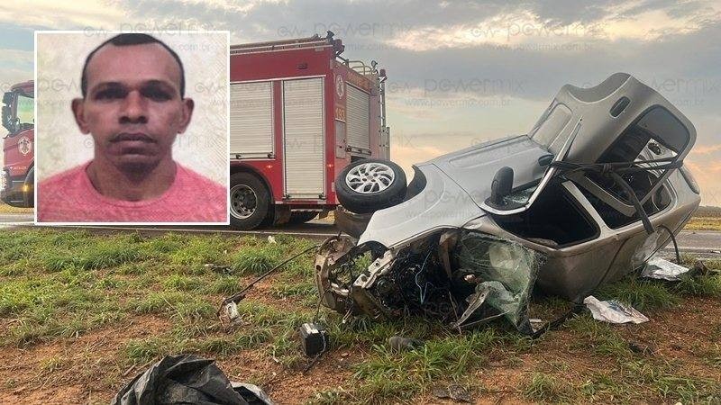 Um homem identificado como Abimael Cerqueira Bezerra, de 43 anos, morreu em um acidente frontal entre uma VW Amarok branca e um Fiat Uno prata na estrada do Morocó, zona rural de Sorriso, na tarde desta terça-feira (7).