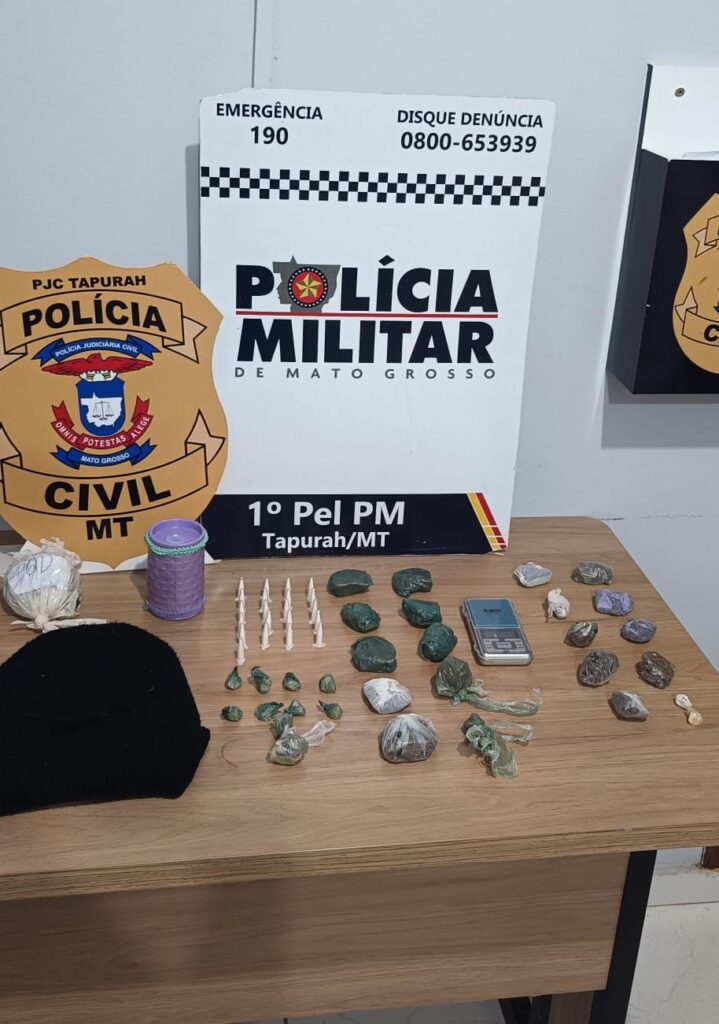 Uma operação realizada na tarde desta sexta-feira (21), em Tapurah, resultou na apreensão de diversas porções de drogas, balança de precisão, uma balaclava e aparelhos celulares. A ação fez parte da Operação Tolerância Zero, que tem como foco o combate às facções criminosas e ao tráfico de drogas na região.